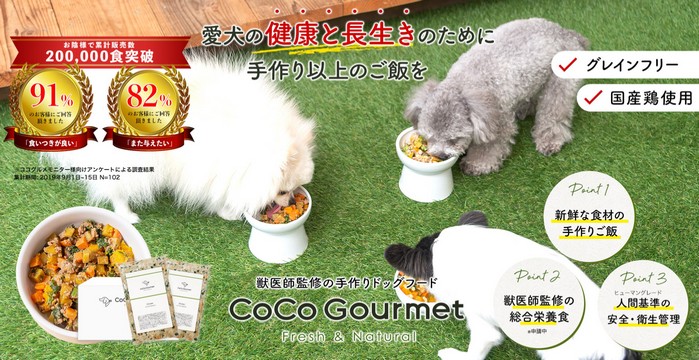CoCo Gourmet(ココグルメ)は新鮮な食材をつかった手作りドッグフードです。
